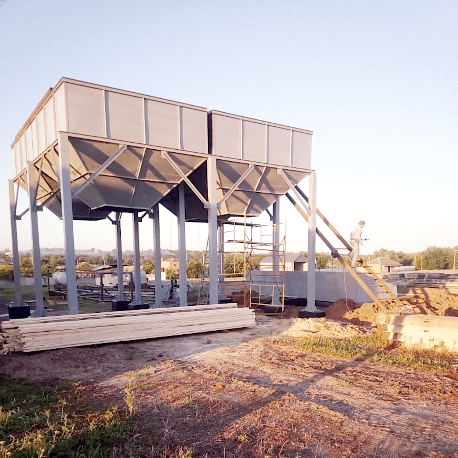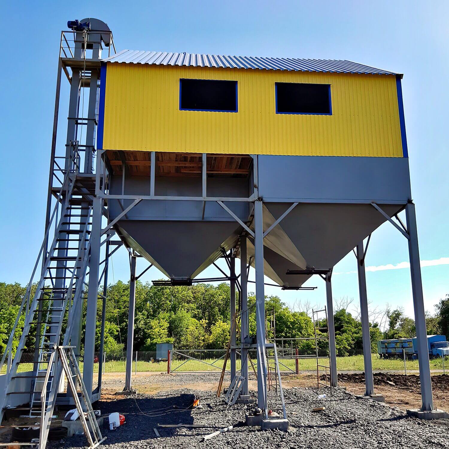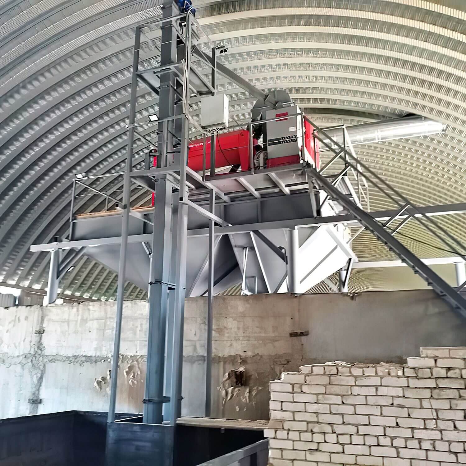 Строительство зерноочистительного комплекса на 2 бункера в существуещем ангаре, с тупиковой завальной ямой.